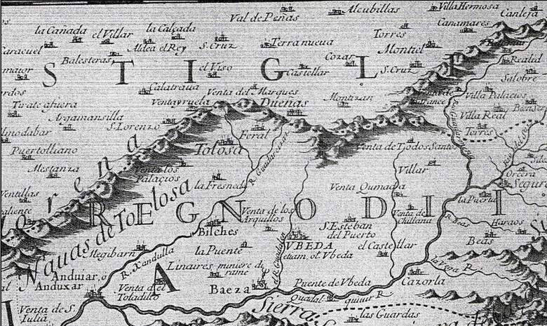 En el mapa de 1696 de Rossi, sobre los Reinos de Granada y Andalucía, se puede encontrar Cózar, al norte del límite del Reino de Jaen. Es curioso que no aparece Infantes y sí aldeas mucho más pequeñas como Cañamares y Torres, hoy desaparecida.